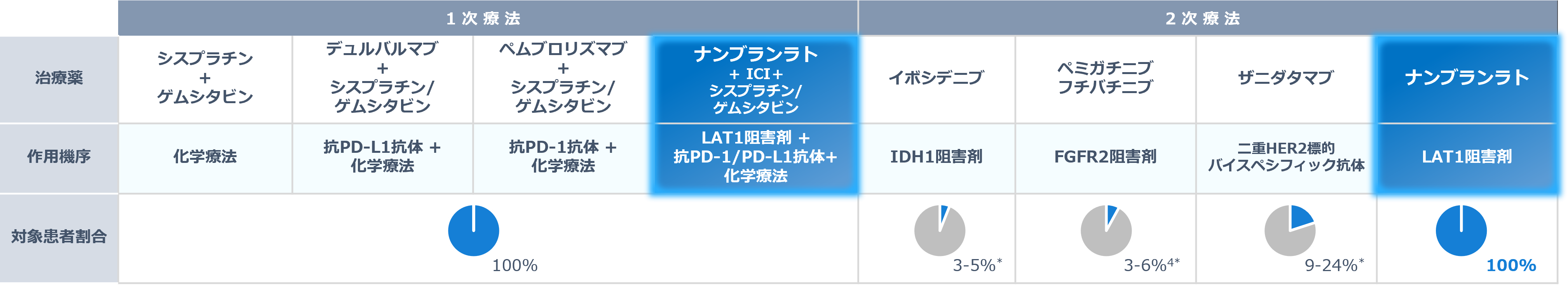 ナンブランラトは、抗PD-1/PD-L1抗体との併用効果が動物モデルにおいて確認されており、1次療法において25週目以降の維持療法にアドオンすることで、標準療法と競合することなく追加的な効果を発揮できる可能性があります。